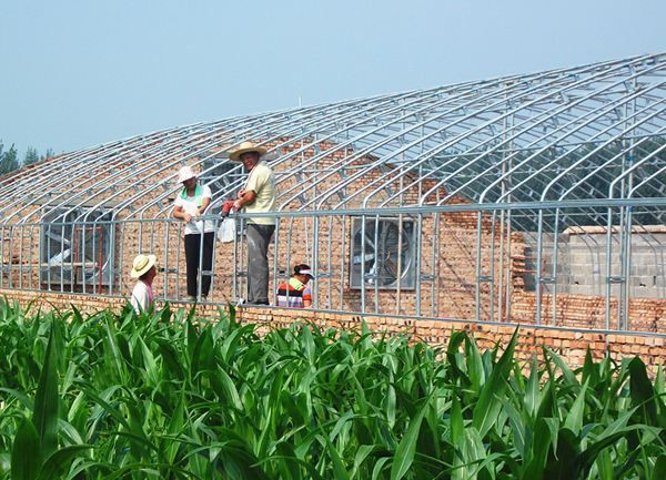 二、在養殖圈上搭建塑料暖棚。以木桿、高粱秸稈等支撐物作棚架,上邊覆蓋留有通氣孔的塑料薄膜,而后將塑料薄膜四周用泥沙、草捆等壓嚴,這樣,可提高舍內溫度,達到保暖防寒目的。