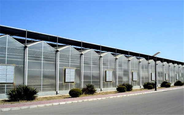 采用熱鍍鋅鋼制骨架,覆蓋材料為5mm鋼化玻璃,透光率在九十以上。溫室大棚頂部及四周為專用鋁型材。溫室大棚頂部為雙向開窗,齒輪齒條副傳動。根據用戶需要,溫室大棚兩個端面可安裝濕簾和風機,也可在兩個端面及側面安裝鋁型材推拉窗、平開窗或外翻窗。